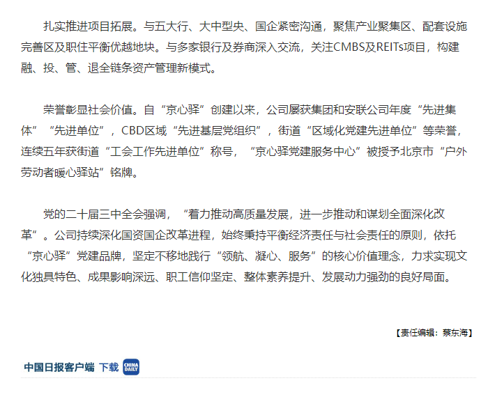 【中國日報中文網(wǎng)】北京安聯(lián)置業(yè):強化黨建引領(lǐng) 共建共享提高治理效能