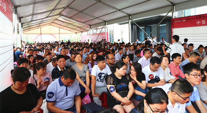 集團公司副總經(jīng)理夏柱兵出席項目首開(kāi)儀式,地產(chǎn)集團董事長(cháng)陶文勝、總經(jīng)理黃朝暉、副總經(jīng)理邰崢以及安聯(lián)公司董事長(cháng)胡為民、總經(jīng)理孫慧芳等現場(chǎng)見(jiàn)證。本次開(kāi)盤(pán)采用電腦搖號方式選房,共吸引了700余組客戶(hù)前來(lái)選房,上午8:48分正式開(kāi)始,不到90分鐘176套首開(kāi)房源全部告罄。