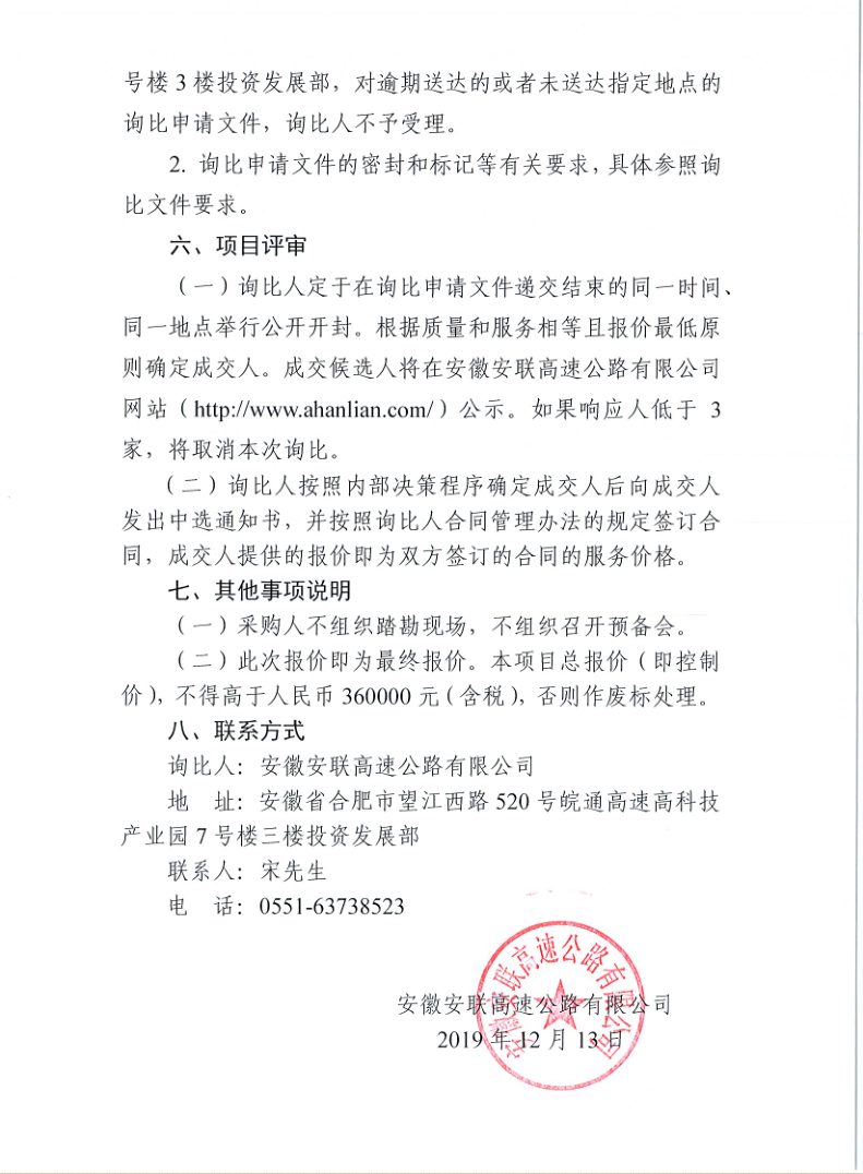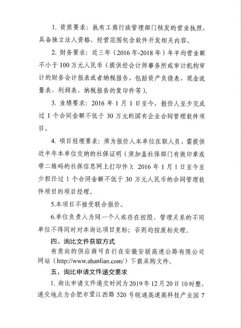 安徽安聯(lián)高速公路有限公司合同管理系統建設項目詢(xún)比公告
